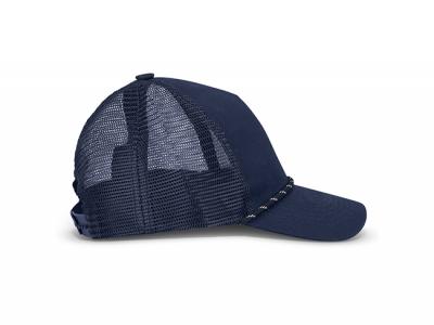 Unsere strukturierten Fünf-Panel-Caps im klassischen Trucker-Stil sind aus 100 % Baumwollköper mit einem atmungsaktiven Netzrücken gefertigt. Mit gebogenem Schirm, passendem Knopf und dekorativen Kordeldetails bietet diese Kappe sowohl Stil als auch Funktionalität. Weitere Merkmale sind ein Schweißband für hohen Tragekomfort und ein verstellbarer Schnappverschluss, der eine perfekte Passform für die meisten Träger gewährleistet.