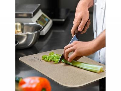 Ein praktisches und preisgünstiges Schneidebrett, das aus einer Mischung aus BPA-freien Weizenstrohfasern und Polypropylen hergestellt wird.