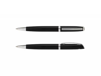 Unser Kugelschreiber mit Drehmechanik aus recyceltem Aluminium mit eleganter Mattlackierung und polierten Chromakzenten. Genießen Sie das flüssige Schreiben mit der blauen Mine, die 1200 Meter hochwertige deutsche Dokumental-Tinte enthält. Ein dezentes Recycling-Symbol auf der Oberseite des Gehäuses unterstreicht sein umweltfreundliches Design.