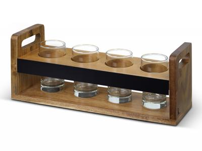 Jedes Tablett wird mit vier 240-ml-Gläsern geliefert, ideal für eine Vielzahl von Verkostungsflights. Mit der Kreidetafel können Sie jedes Glas beschriften und so Ihrer Verkostungspräsentation eine persönliche Note verleihen.