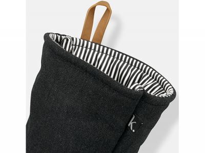 Der Keepsake Canvas-Topflappen ist aus strapazierfähigem 300 g/m² Baumwoll-Canvas mit einer gewaschenen schwarzen Außenseite und einem schicken schwarz-weiß gestreiften Futter gefertigt. Er verfügt über eine praktische braune PU-Aufhängeschlaufe und ein kleines gewebtes Keepsake-Etikett für ein raffiniertes Finish. Jeder Topflappen wird mit einem Keepsake-Markenanhänger geliefert, was ihn zu einer hervorragenden Wahl für das Gastgewerbe, Veranstaltungen oder Küchengeschenke macht.