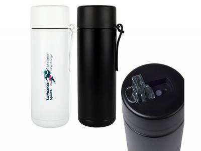 Mit der individuellen 600-ml-Edelstahl-Isolierflasche bleiben Sie stilvoll hydriert! Diese elegante doppelwandige Flasche hält Ihre Getränke stundenlang auf der perfekten Temperatur, egal ob es sich um heißen Kaffee für Ihren morgendlichen Weg zur Arbeit oder eiskaltes Wasser nach dem Training handelt. Der clevere Schraubverschluss aus PP verfügt über einen Edelstahlstrohhalm und ein hochklappbares, transparentes Mundstück, sodass Sie auch unterwegs bequem trinken können. Der passende Silikon-Tragegurt bietet zusätzlichen Komfort für vielbeschäftigte Berufstätige, Studenten und Fitnessbegeisterte. Erhältlich in edlem Mattschwarz oder elegantem Glanzweiß, wird jede Flasche in einer schönen Geschenkbox geliefert. Sie passt in alle handelsüblichen Autobecherhalter und ist somit ideal für Unternehmensteams, Fitnessstudio-Mitglieder und Veranstaltungsteilnehmer. Ideales Werbematerial für Gesundheits- und Wellnessunternehmen, Firmenbüros, Fitnesscenter und Veranstalter von Outdoor-Events.