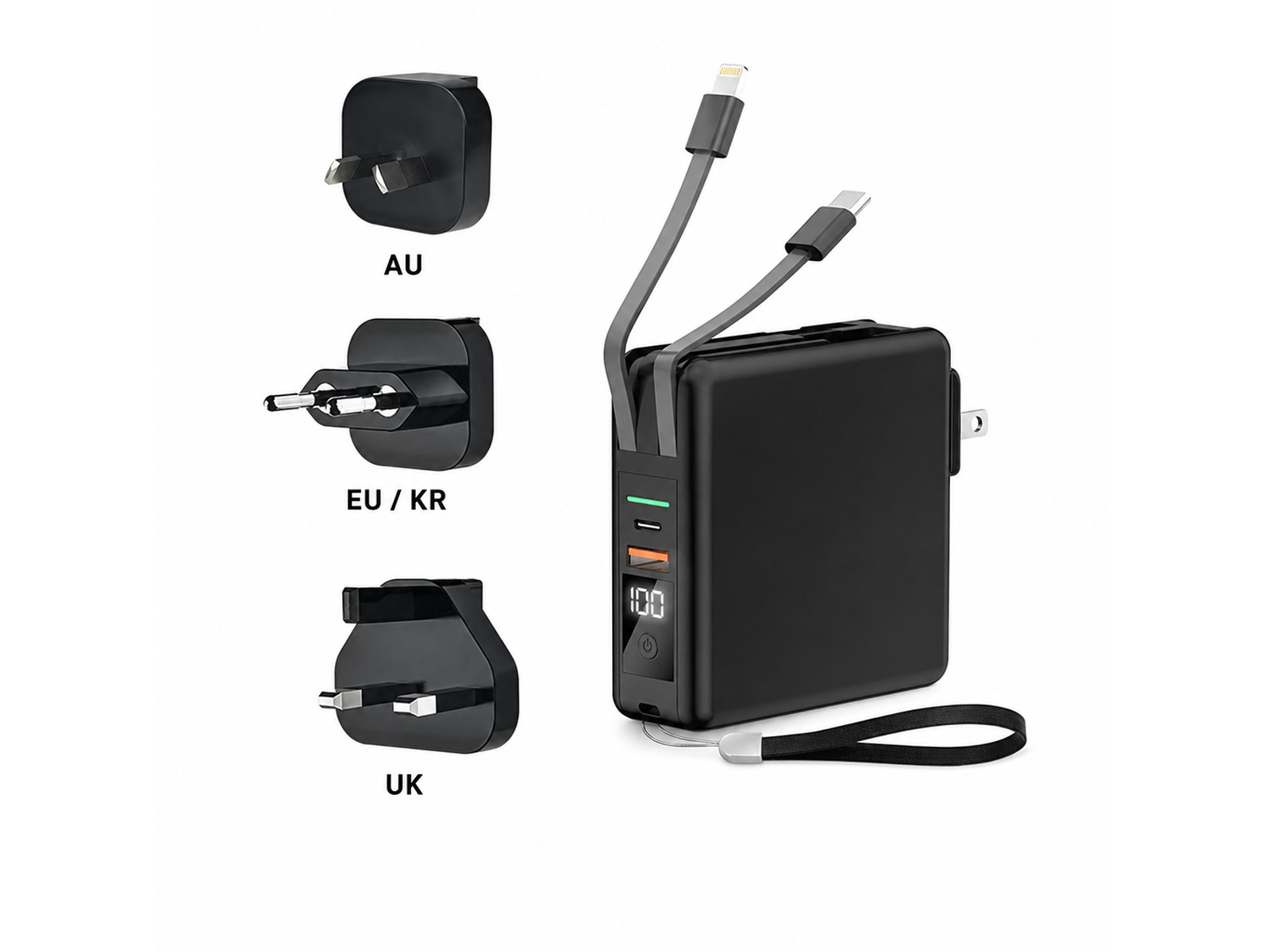 Das Gerät enthält austauschbare Steckeradapter für Steckdosen in Australien, der EU, Großbritannien und den USA, sodass Sie nicht mehrere Reisezubehörteile mitnehmen müssen. Ob Sie an internationalen Konferenzen, Geschäftstreffen oder Urlaubsreisen teilnehmen, dieses Schnellladegerät sorgt dafür, dass Ihre Geräte immer mit Strom versorgt sind.