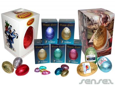 Unsere Spezifisch fuer Sie Produzierten Ostern Schokoladeneier in Personalisierten Boxen - 100g koennen ab einer Mindestbestellmenge von 100 Stücken hergestellt werden.