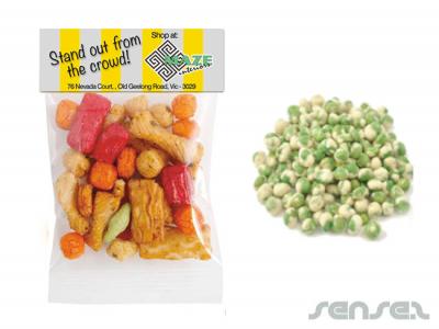 Produzieren Sie das passende Werbegeschenk für ihre Zielgruppe. Bedrucken Sie diesen innovativen Werbeartikel wasabi peas in tueten (50 g) oder einen unserer Logo bedruckten nüsse und reis cracker Produkte.